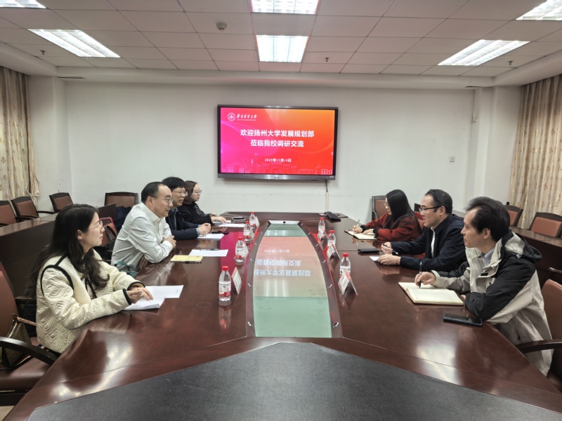 12月15日上午,扬州大学党委发展规划部(发展规划处)部长陈森青一行莅临我处,围绕高校发展规划、学科建设、政策研究等相关工作进行专题调研交流。座谈会由我校发展规划处处长孟成民主持,领导班子成员及有关科室负责人参加座谈交流。